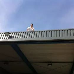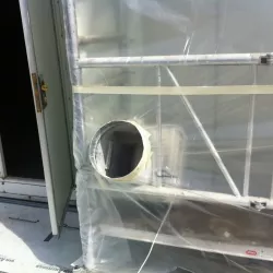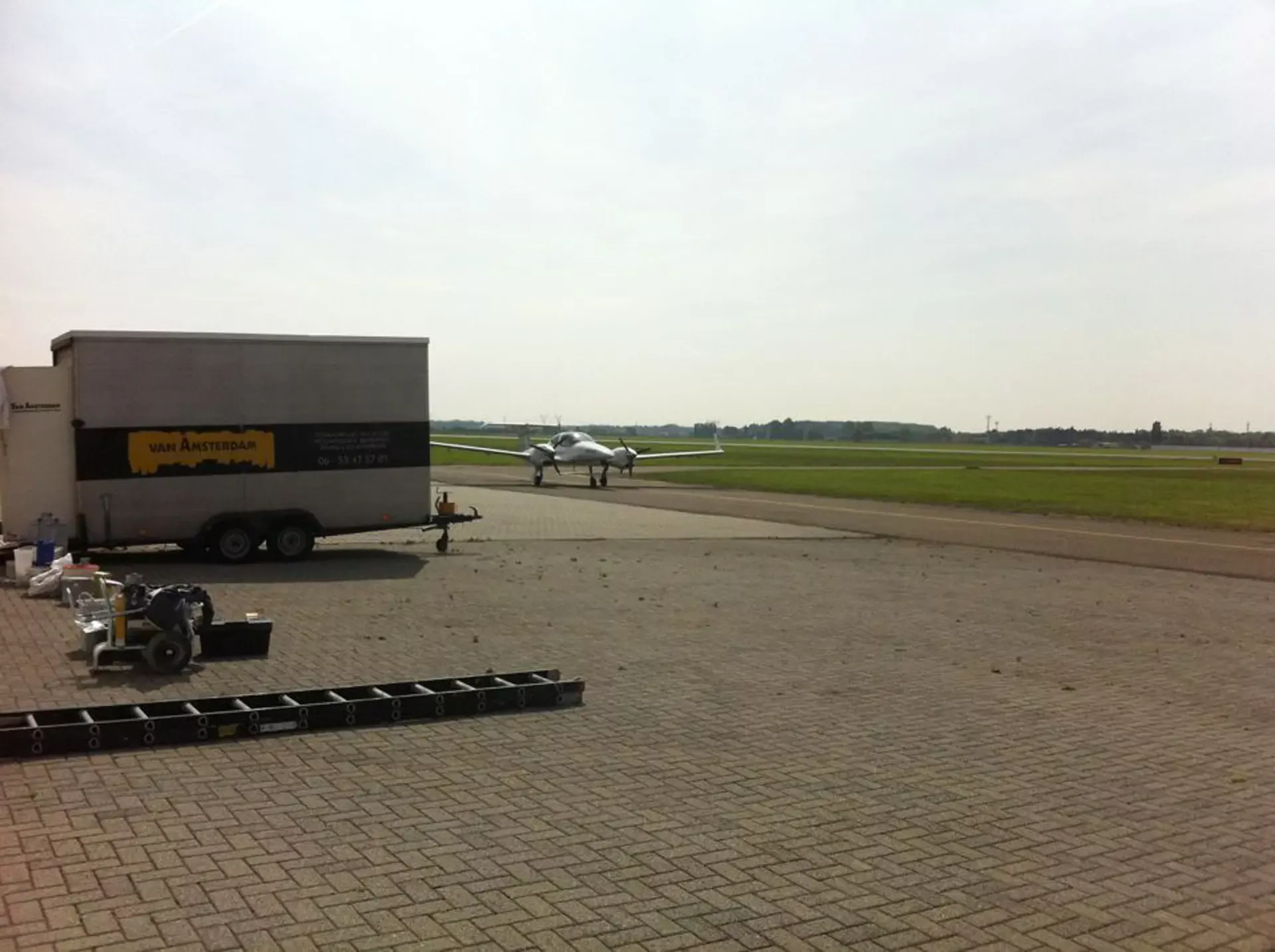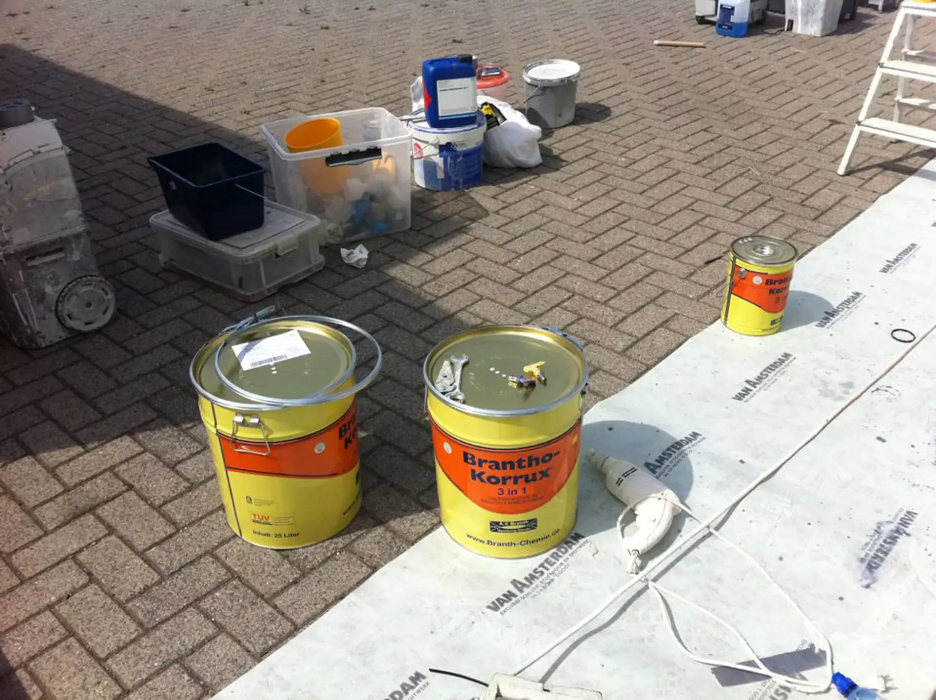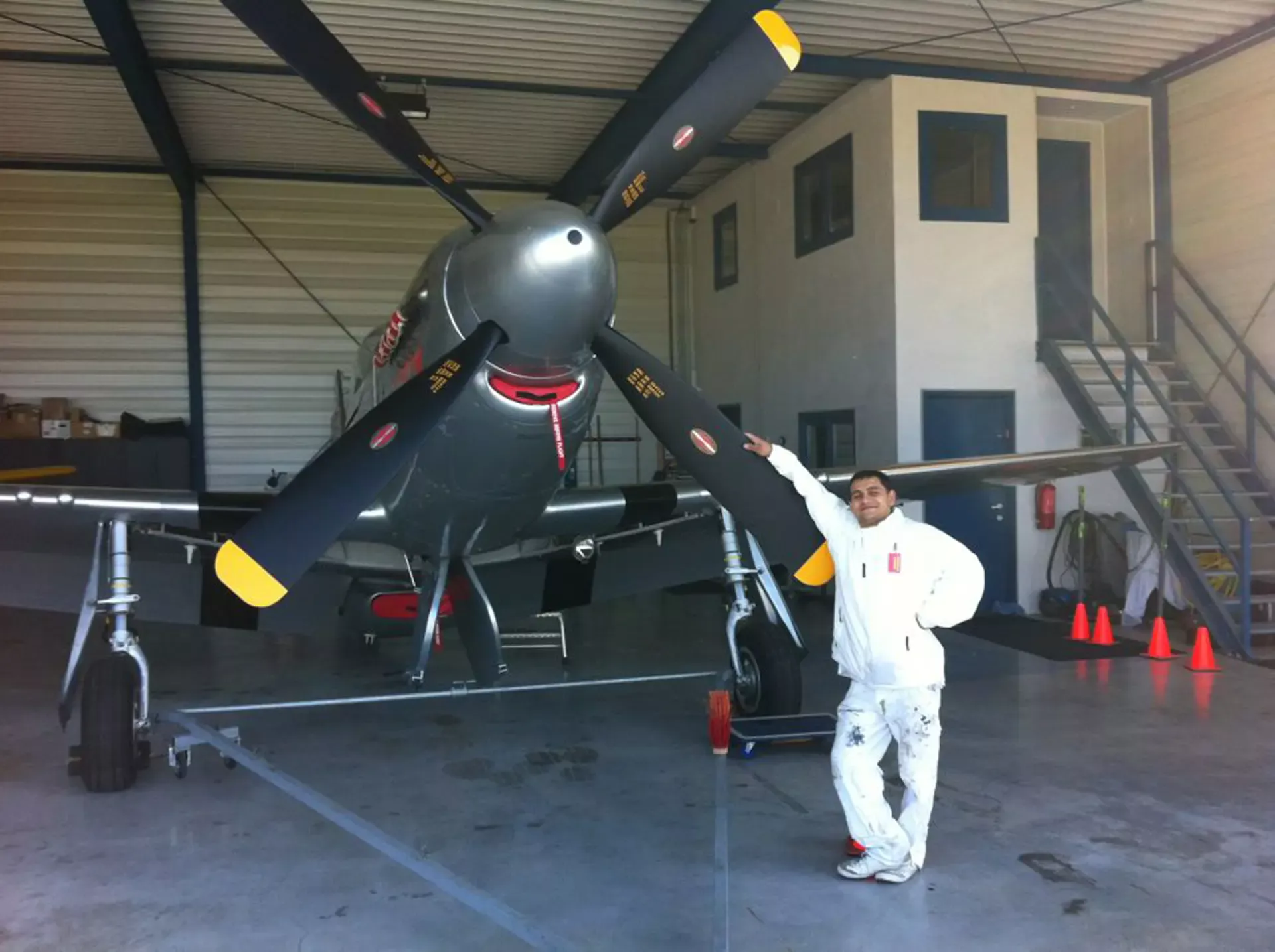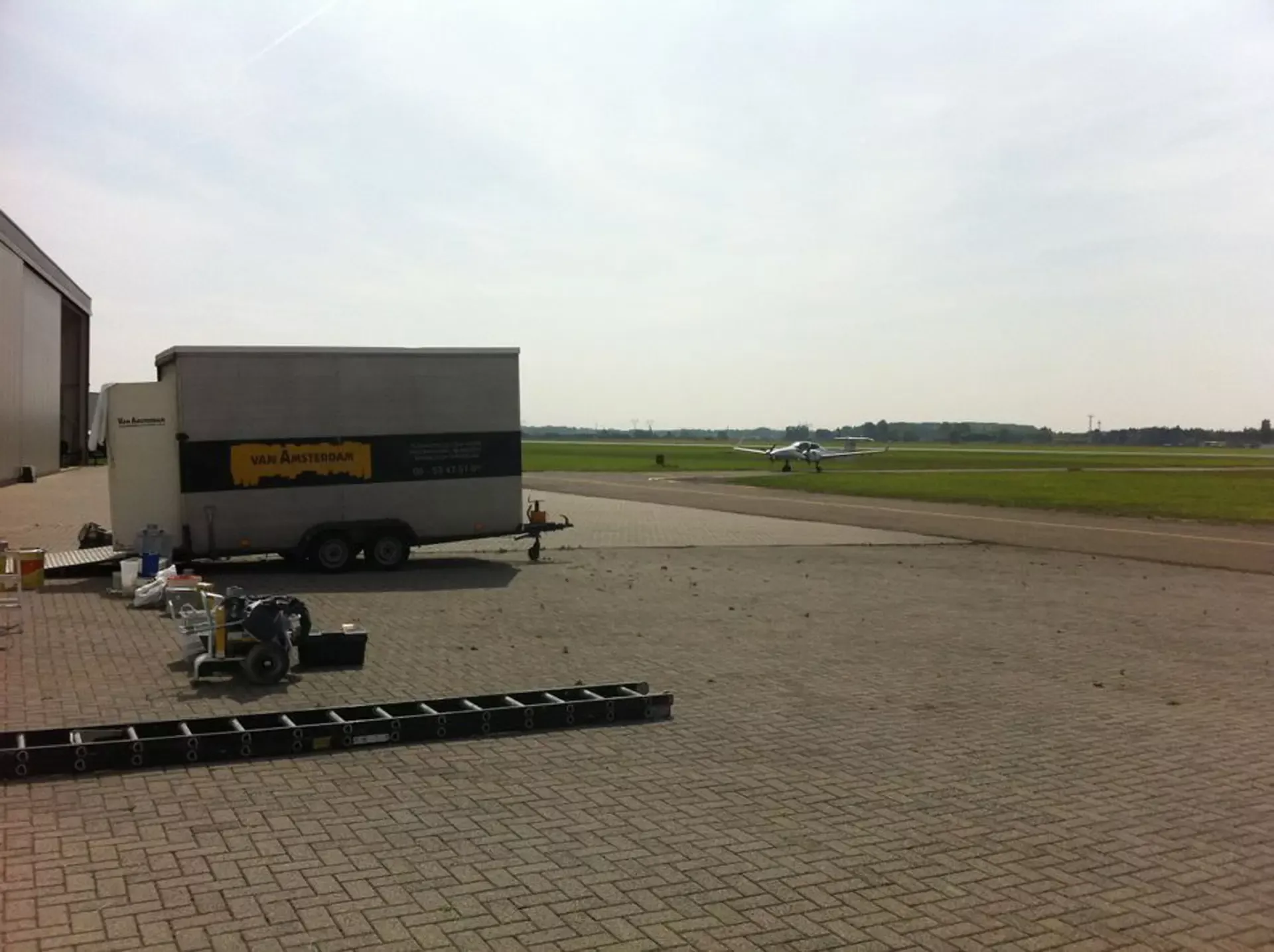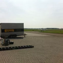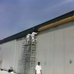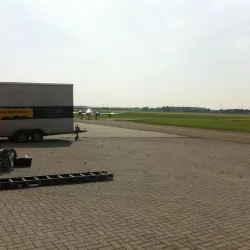 In België kregen we de bijzondere opdracht om de privéhangar van een verzamelaar van historische vliegtuigen te spuiten. De grootste uitdaging hierbij was het voorkomen van verfnevel op de onschatbare vliegtuigen. Met behulp van ons standaard afzuigsysteem hebben we rondom de steiger een vacuümunit gecreëerd, waardoor we veilig konden werken zonder risico op schade. De 40 meter lange deuren zijn vervolgens behandeld met een roestwerende verf, die garant staat voor minstens 10 jaar onderhoudsvrij gebruik.